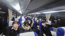先ほど、東京駅に到着しそれぞれの降車場所にのバスに乗って移動しています!