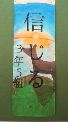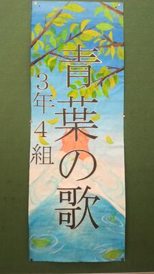 めくり紹介の最後として、3年生5クラスのめくりを紹介します。どのクラスもレベルの高い作品を作り上げてくれました。それぞれのクラスの自由曲の持つイメージ、伝えたいものが上手に表現されています。