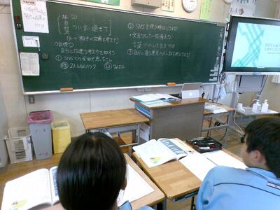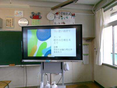 先日の保護者懇談会でも学校として伝えさせていただいたSNSの使い方を道徳で考えました。