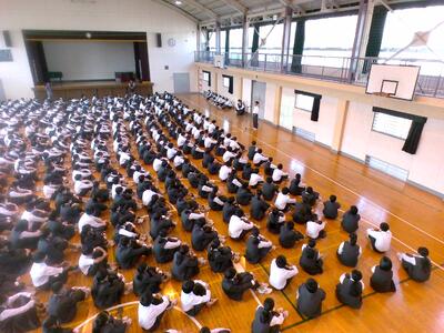 本日学校朝会が行われました。3学年が体育館に集合するのは今年度2回目でしたが、素早い集合、整列ができていて素晴らしかったです。