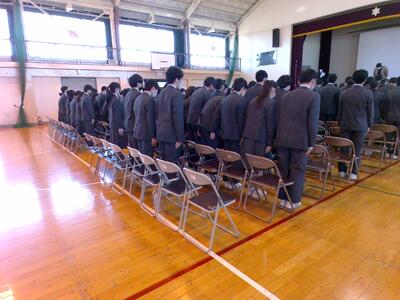 県公立入試の合格発表を間近に控えたこの日、3年生は卒業式練習が始まりました。