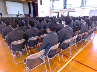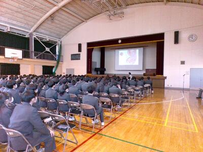 講師に誕生学アドバイザー 久保木裕子先生を招き、体育館で性教育の講演がありました。