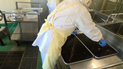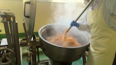 今日は、豚肉、チョリソーソーセージ、玉ねぎ、にんじん、えびを炒め、トマト缶やチリパウダーなどで味をつけました。