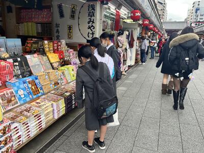 2月13日 校外学習(浅草) 投稿: 若宮中 管理者 (11:34) 浅草にも多くの班が見学しに来ています! 人形焼に並んでいたり、日本文化のお土産を見たり、浅草寺でおみくじを引いているのも見かけました。 ちなみに浅草寺のおみくじは凶が出やすいらしいです。末小吉は100本に3本らしいです。 まだまだまだ校外学習続きます! Tweet -