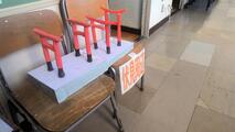 クラスで作ったちぎり絵などがあり、かわいい「わかみぃ」(若宮中学校のマスコットキャラクター)が飾られていました。